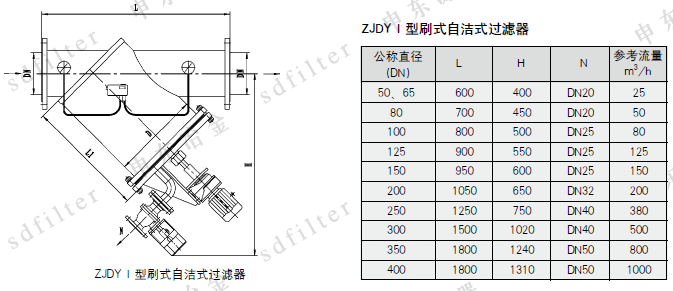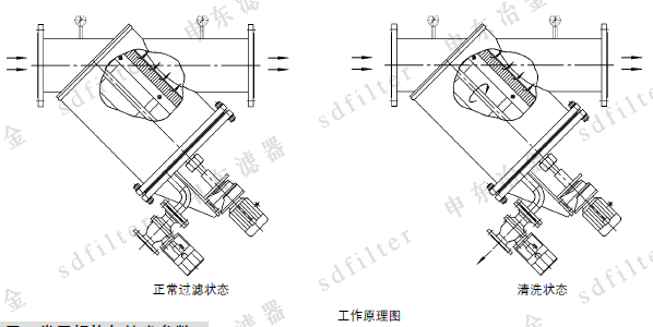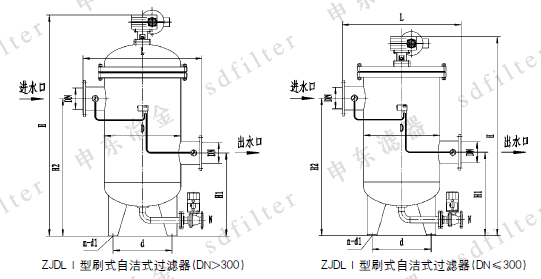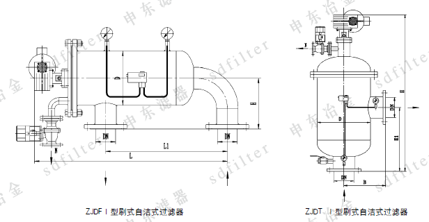 ZJD系列刷式自潔式過濾器濾件采用高強度的Johnson濾網,具有處理量大、使用壽命長、清洗效率高等特點。本機采用壓差控制、定時控制自動清洗濾網。當過濾器進出口壓差達設定值或定時器達到設定時間時,電動控制箱發出信號驅動電機轉動,同時排污閥打開。吸附在濾網上的雜質微粒被轉動的鋼絲刷刷下,隨水流從排污閥排出。當過濾器進出口壓差恢復正常或定時器設定時間結束后,電機停止運轉,電動排污閥關閉。整個過程中,物料不斷流,實現了連續化、自動化生產。