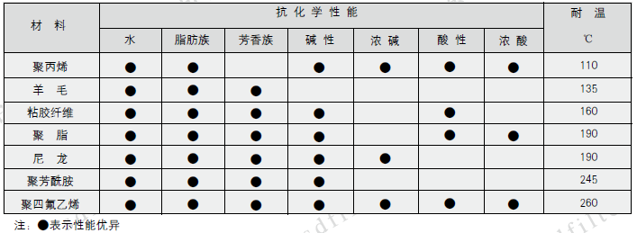 利用深層過濾原理工作,針氈布濾袋可濾除大量的固體或凝膠類軟性質(zhì)。100%純凈纖維用針刺方法做成立體三維過濾層面,較大顆粒雜質(zhì)被濾袋表面捕捉,而微細(xì)顆粒則被捕捉于濾材深度中,因而是一種深度性濾材。過濾精度從1-200μ m。針氈布濾袋具有成本低、過濾面積大、壓差小的優(yōu)點(diǎn),是最經(jīng)濟(jì)的過濾方式,針氈布濾袋表面經(jīng)過特殊處理,確保纖維無脫落,但濾袋不可清洗和再使用。具體見下表。
