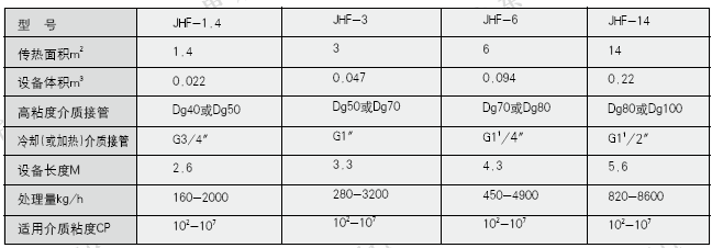 可以根據工藝條件和工藝要求設計并制造傳熱面積100m2以上的J H F型靜態混合器,下表給出的是最常用的小型JHF型靜態混合器,與其他型號不同它以傳熱面積的數值表示其規格。