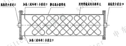 JHF型靜態混合器的工業用途可以分為兩類:第一類是用于高粘度介質的換熱過程,第二類是用作聚合反應器。