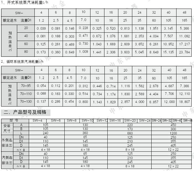 SW-4~SW-24 P1+0.05≤ P0≤0.6MPa 式中:P0—— 蒸汽工作壓力 (MPa)