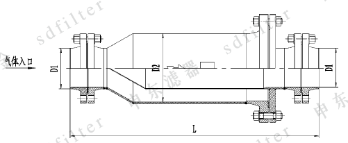 本產品的濾筒(內管)和外筒與管道在同一直線,因而氣流能較平緩地進入濾筒內,基本上無紊流產生,壓損小于