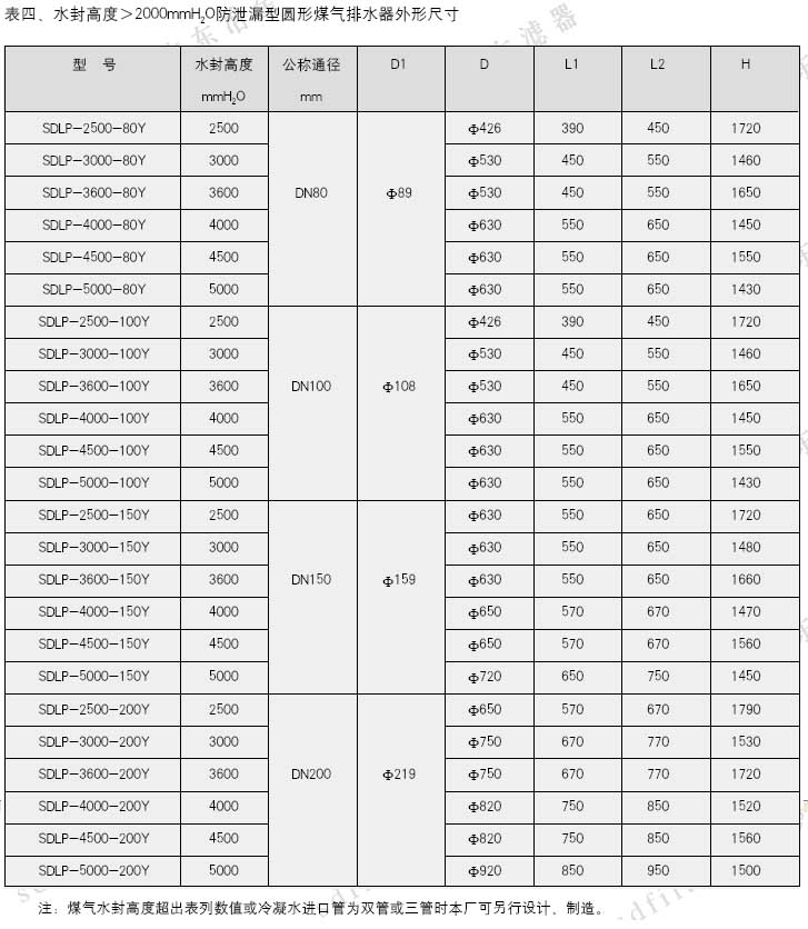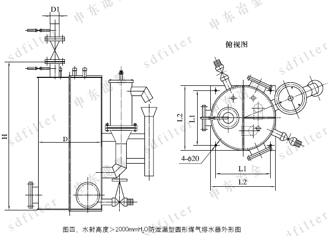 4、水封高度>2000mmH2O立式圓形排水器外形尺寸見圖四、表四