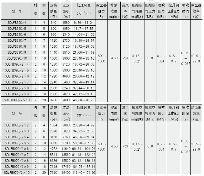 袋式除塵器的運行阻力受含塵氣體的工況、濾料的選取、過濾風(fēng)速的大小影響,過濾風(fēng)速低其運行阻力一般也低,SDLPB型低壓脈沖噴吹袋式除塵器運行阻力一般在800~2000Pa左右。